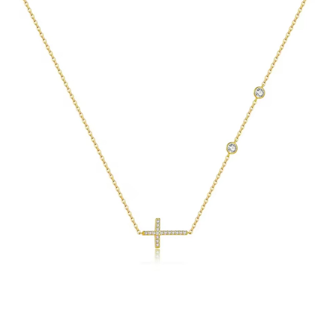 A refined symbol of faith and elegance. This sideways cross necklace with sparkling CZ stones represents strength, balance, and devotion. Designed to be worn daily, it layers beautifully or stands alone as a meaningful statement.
