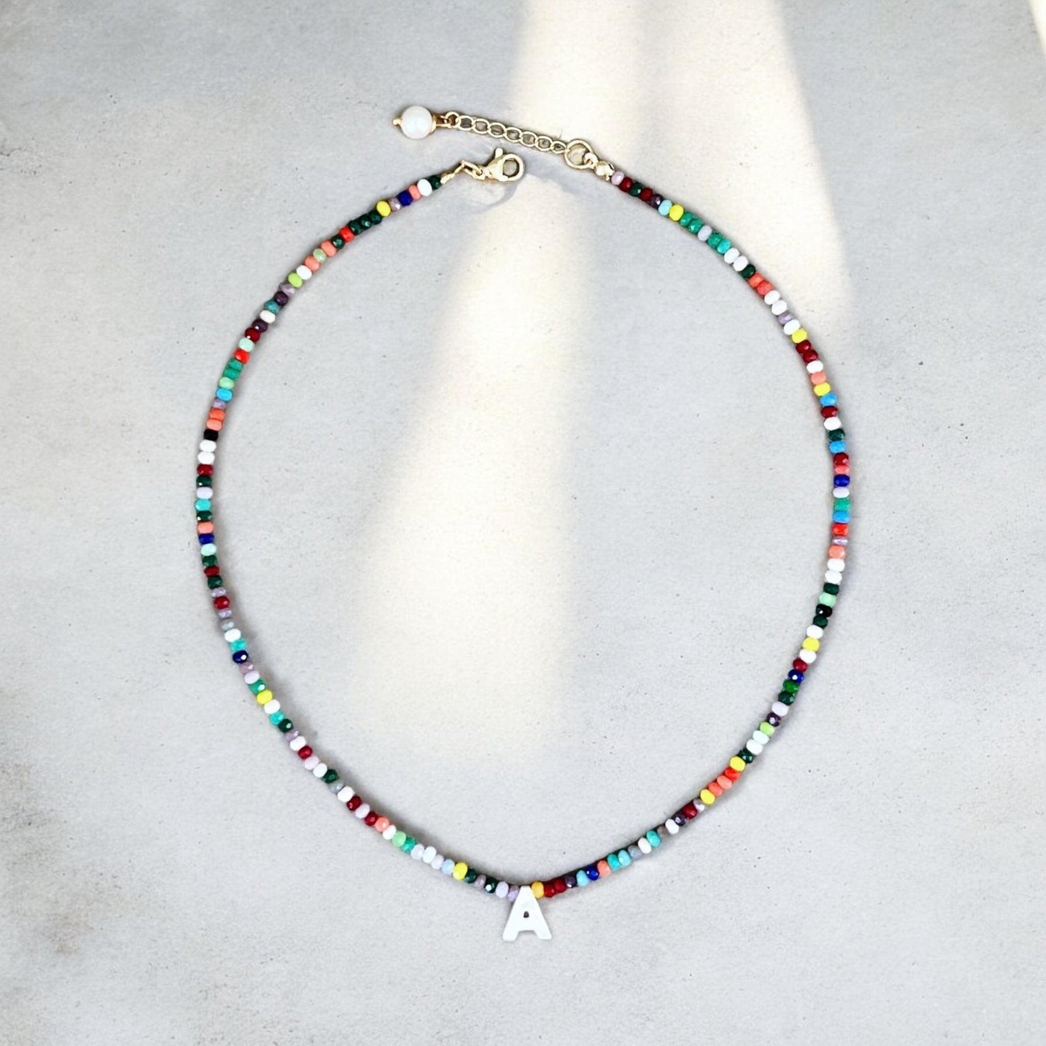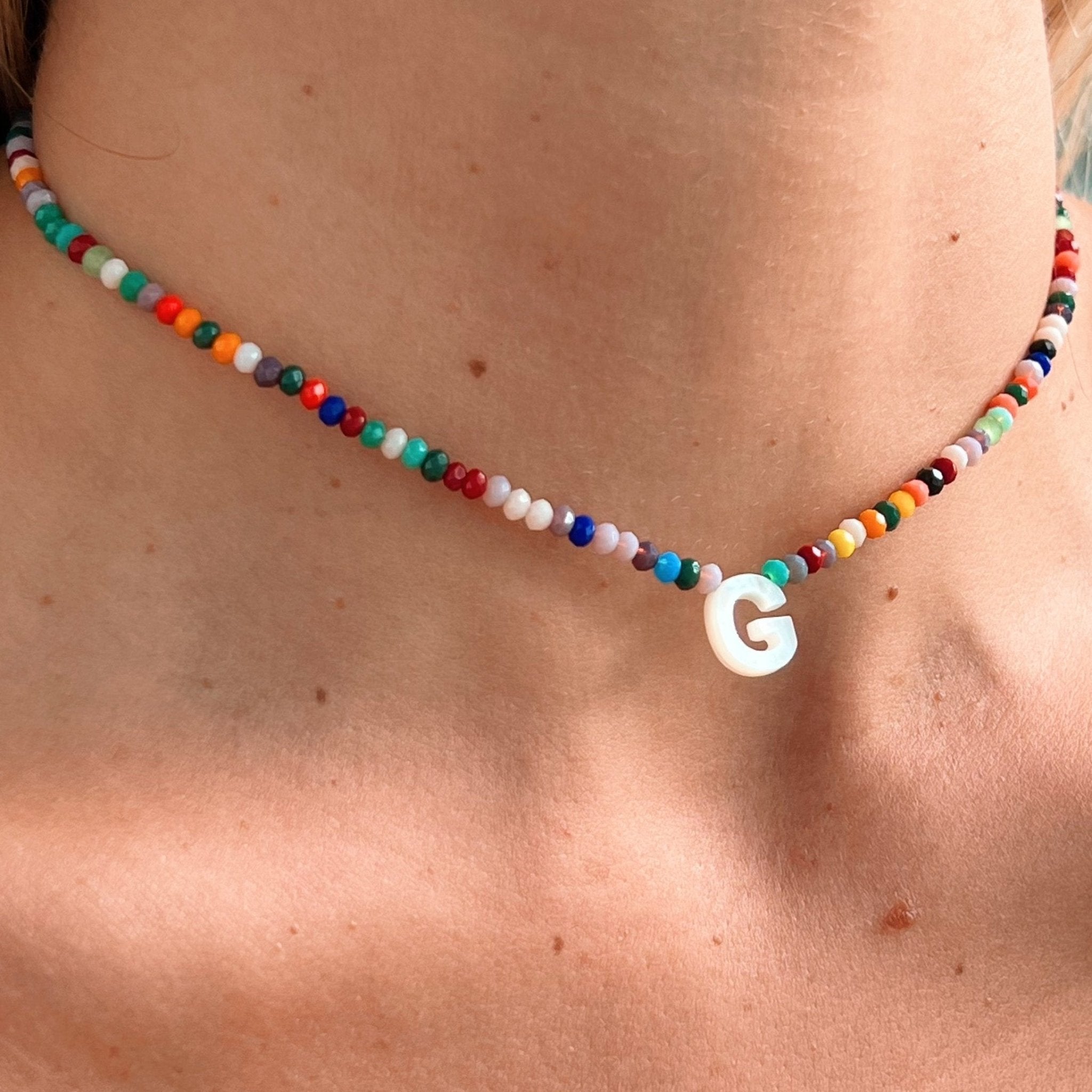 Discover the exquisite elegance of our Mother of Pearl Initial Colorful Crystal Necklace. Each piece is meticulously crafted to feature a luminous Mother of Pearl initial accented with vibrant crystals. Perfect for adding a personalized touch to your ensemble, whether worn alone as a statement piece or layered for a bespoke look. Embrace timeless sophistication and meaningful style with this stunning necklace, ideal for everyday wear or as a heartfelt gift.