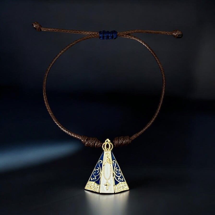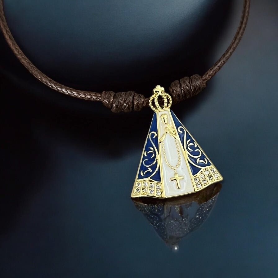 This sacred piece honors the presence of divine love and spiritual guidance. Featuring a beautifully detailed Virgin Mary in deep blue and white enamel with sparkling accents, it serves as a reminder that you are always protected, guided, and embraced by higher light. Wear it as a symbol of your faith, strength, and devotion.