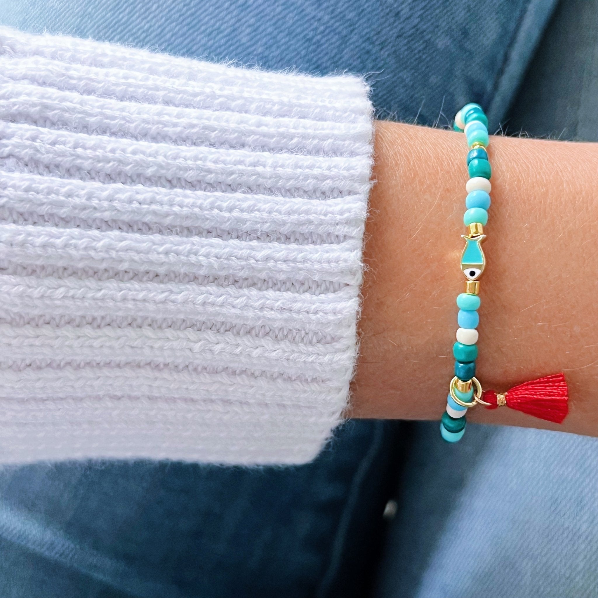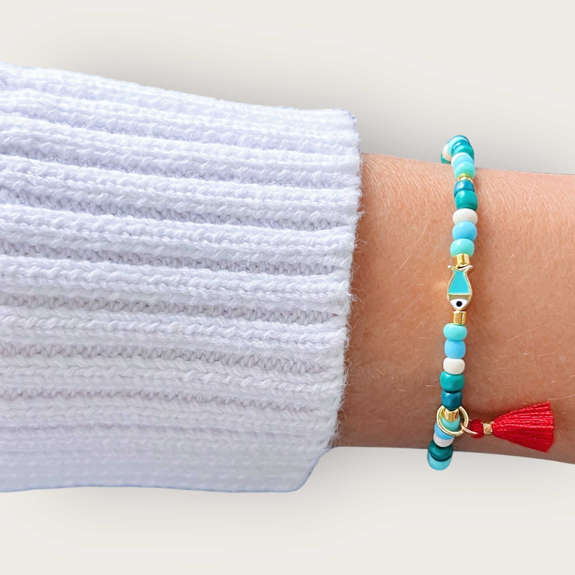 This bracelet blends calming blue tones with a delicate fish charm, symbolizing abundance, prosperity, and emotional flow. Perfect for adding a serene yet meaningful touch to your everyday style.