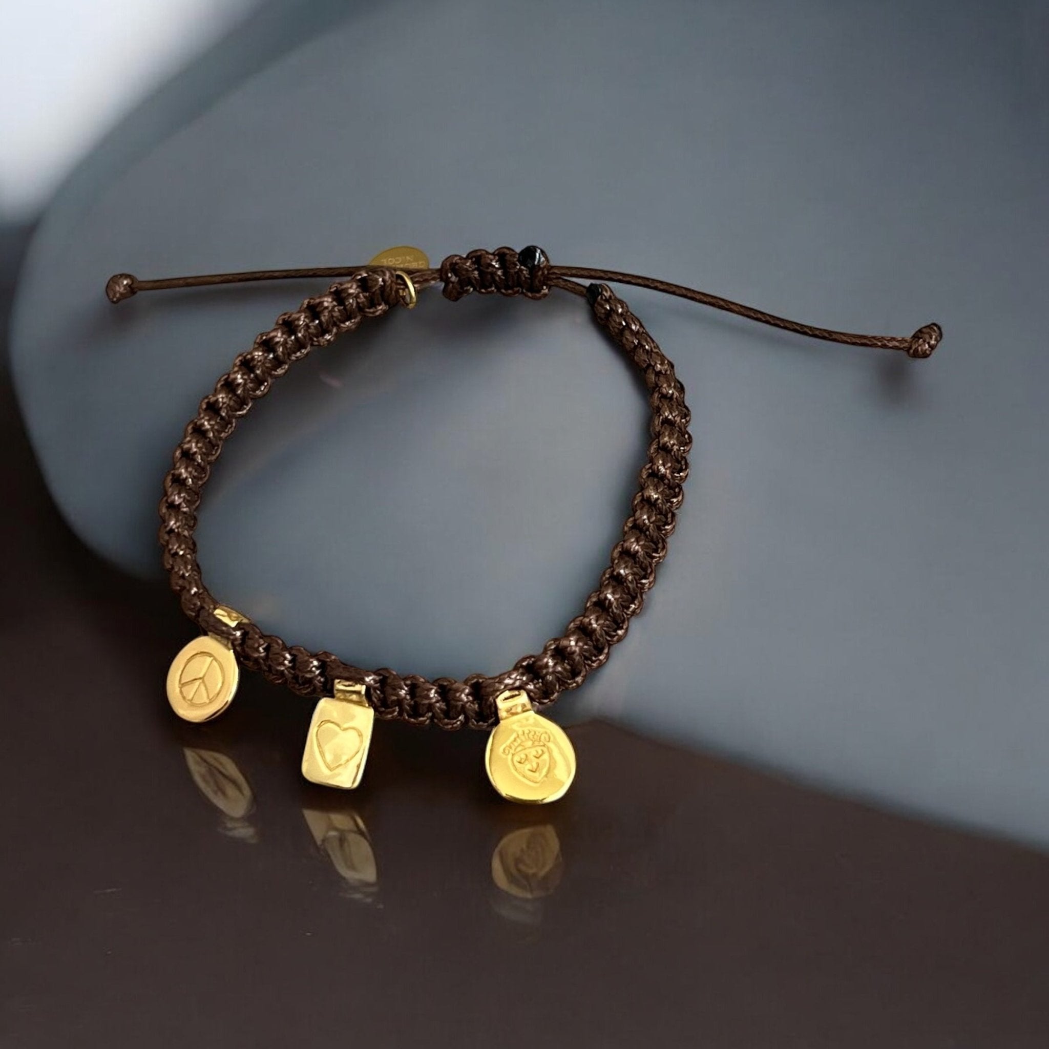 A powerful trio of symbols woven into a single piece: the peace sign to remind you of harmony, the heart to anchor you in love, and the feminine face — an ode to the beauty of embracing who you are and living in joy. Every charm holds meaning, every detail is intentional.