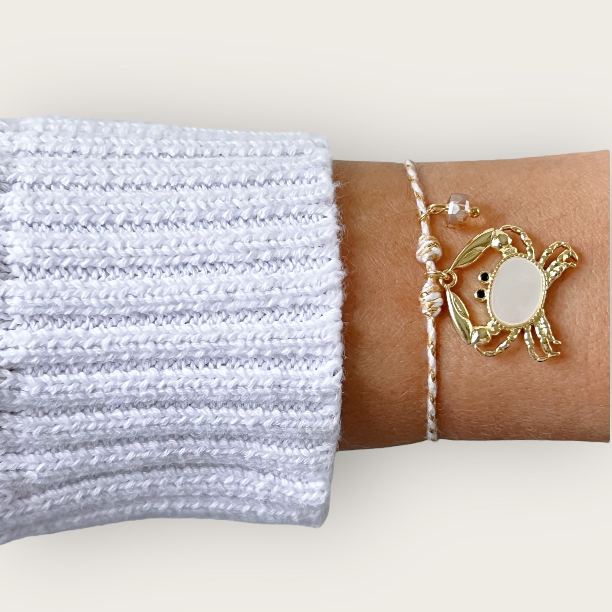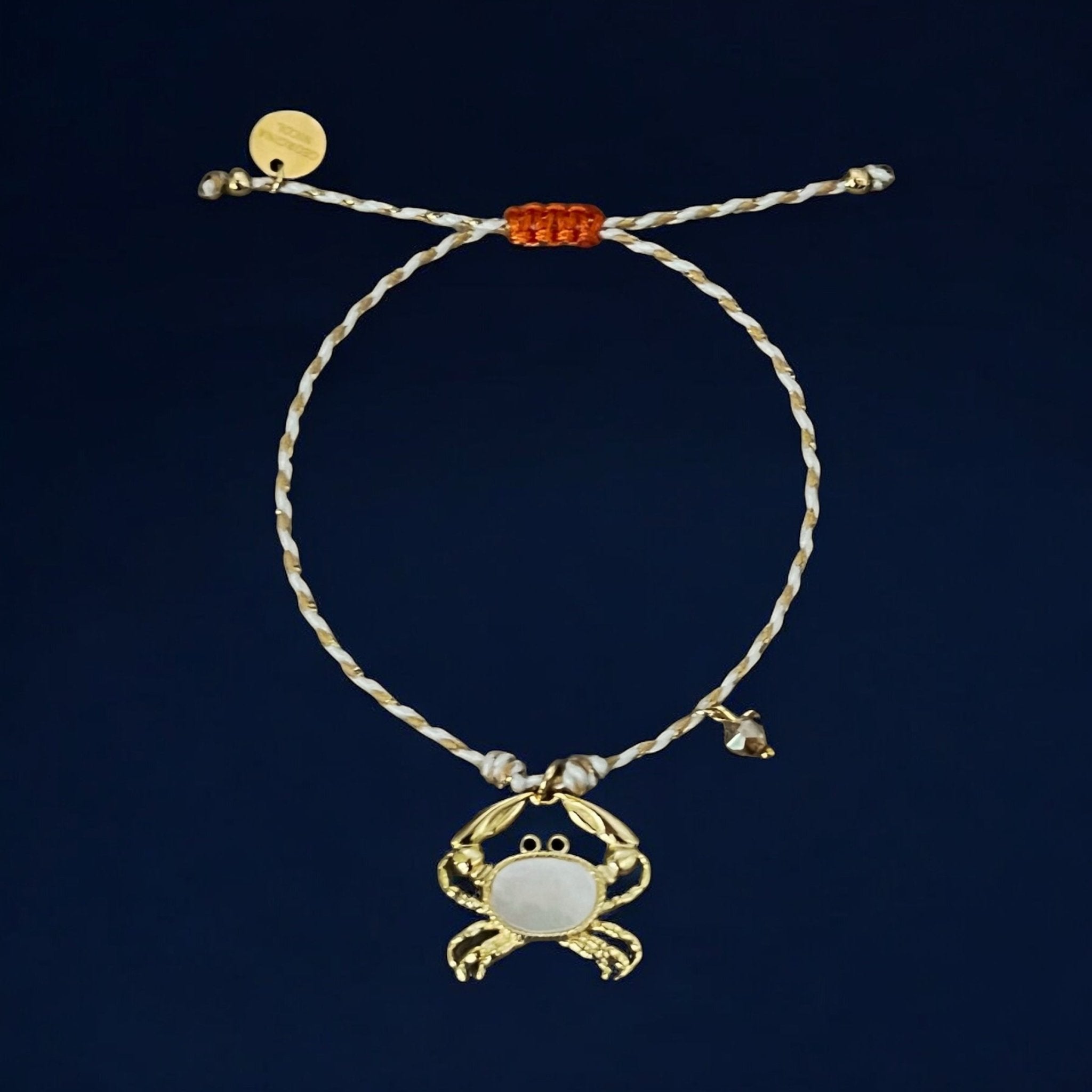 This bracelet embodies the symbolism of the crab: a creature of the sea that represents intuition, resilience, and inner strength. The mother of pearl crab charm brings a luminous energy that reminds you to trust your instincts and embrace your emotional wisdom. With a touch of crystal detail and an adjustable sliding closure, it is a meaningful piece crafted to inspire balance and confidence.