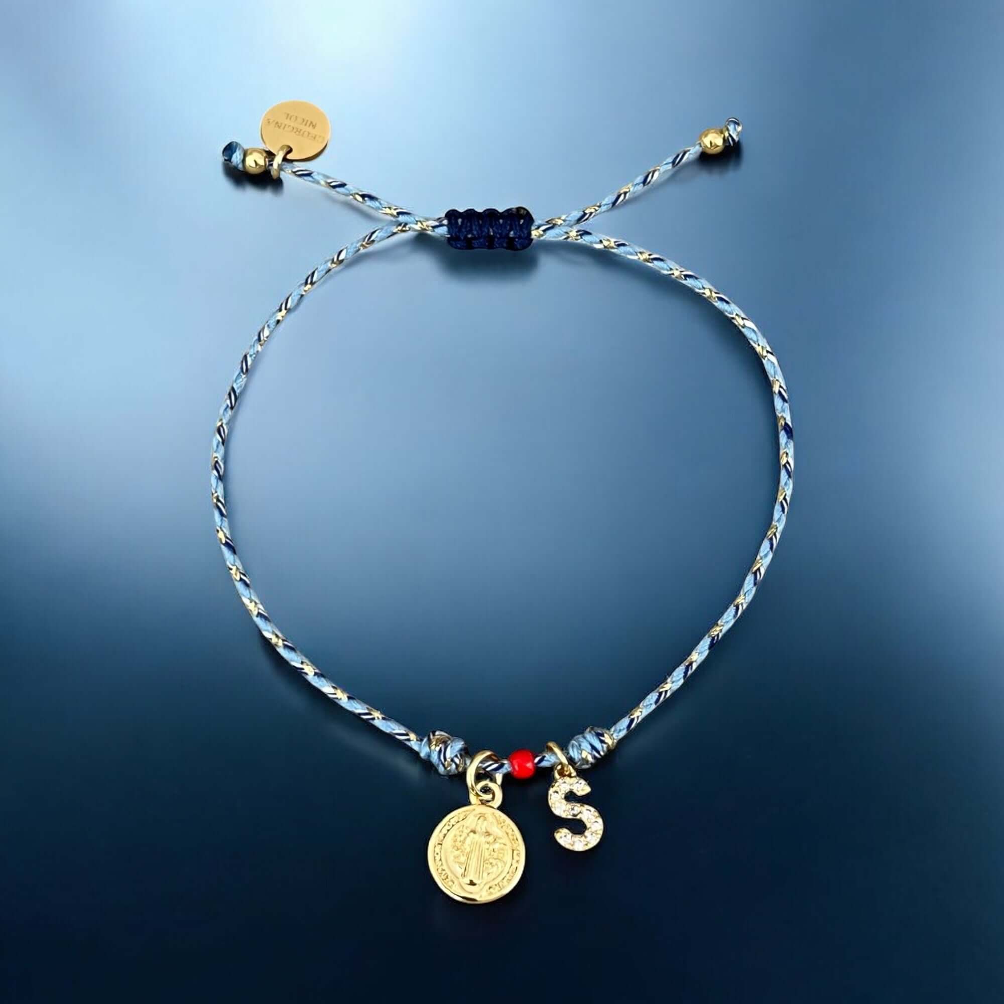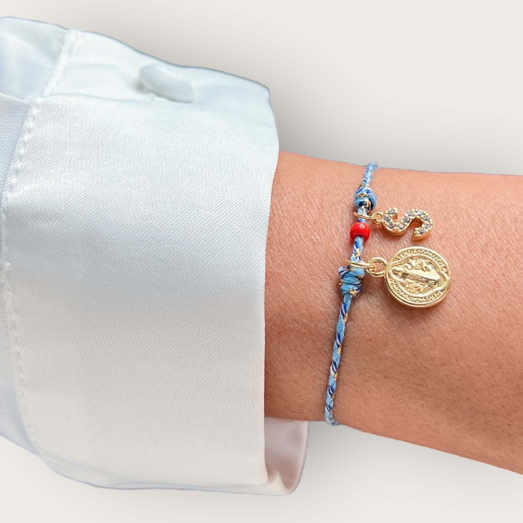 Your name carries energy. This handcrafted cord bracelet features the powerful St. Benedict medal for divine protection and a sparkling CZ initial charm — your identity, your blessings, your shield. A red bead adds strength and vitality to this meaningful piece made for women who trust in their path and honor their light.