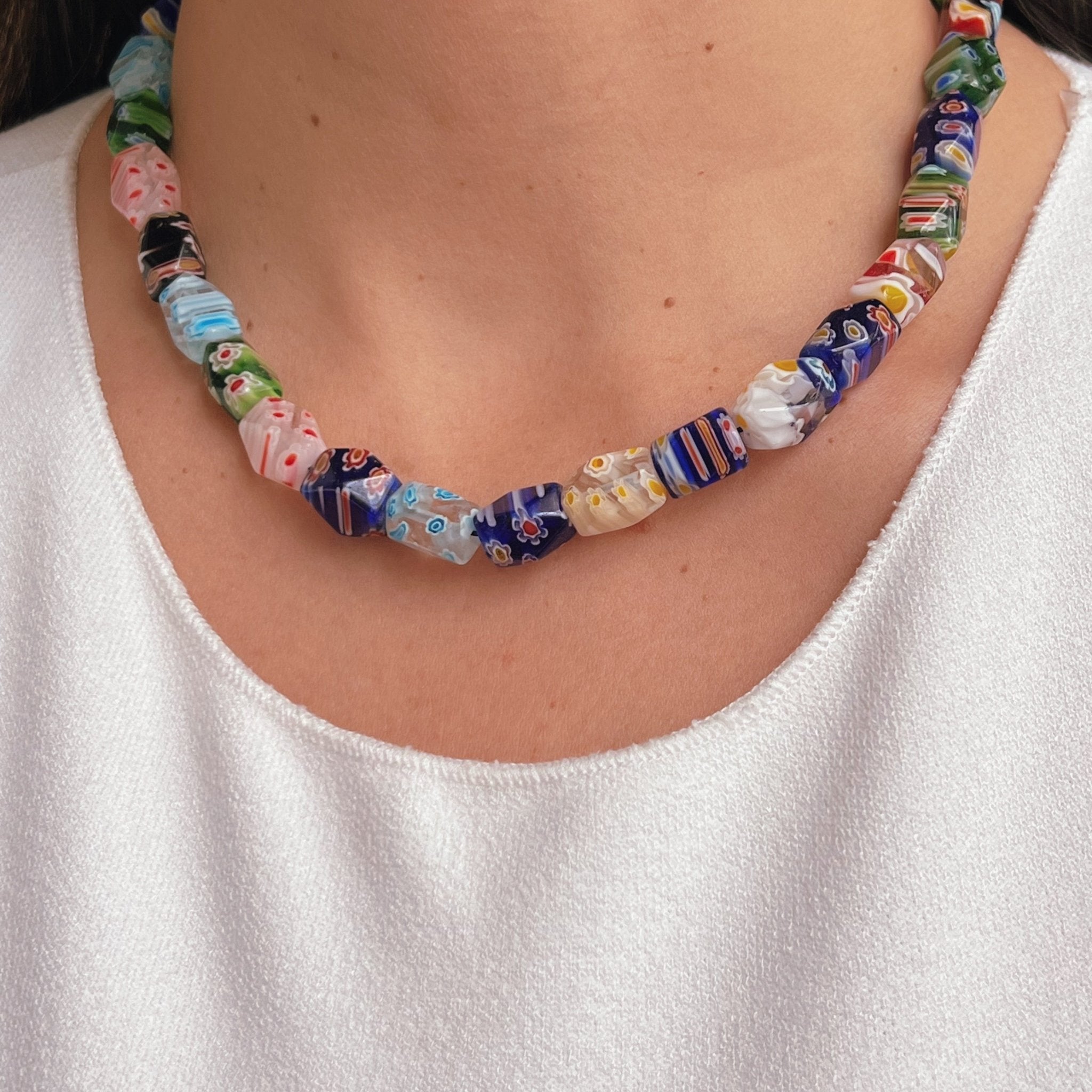I Celebrate Color, Creativity, and Joy – Millefiori Glass Bead Necklace