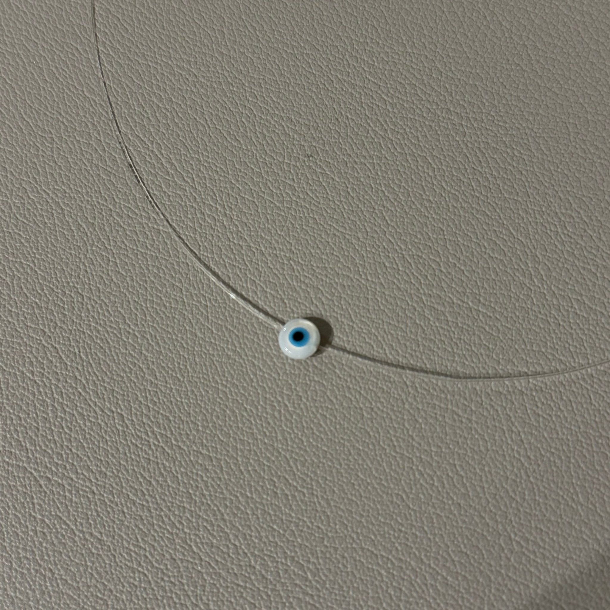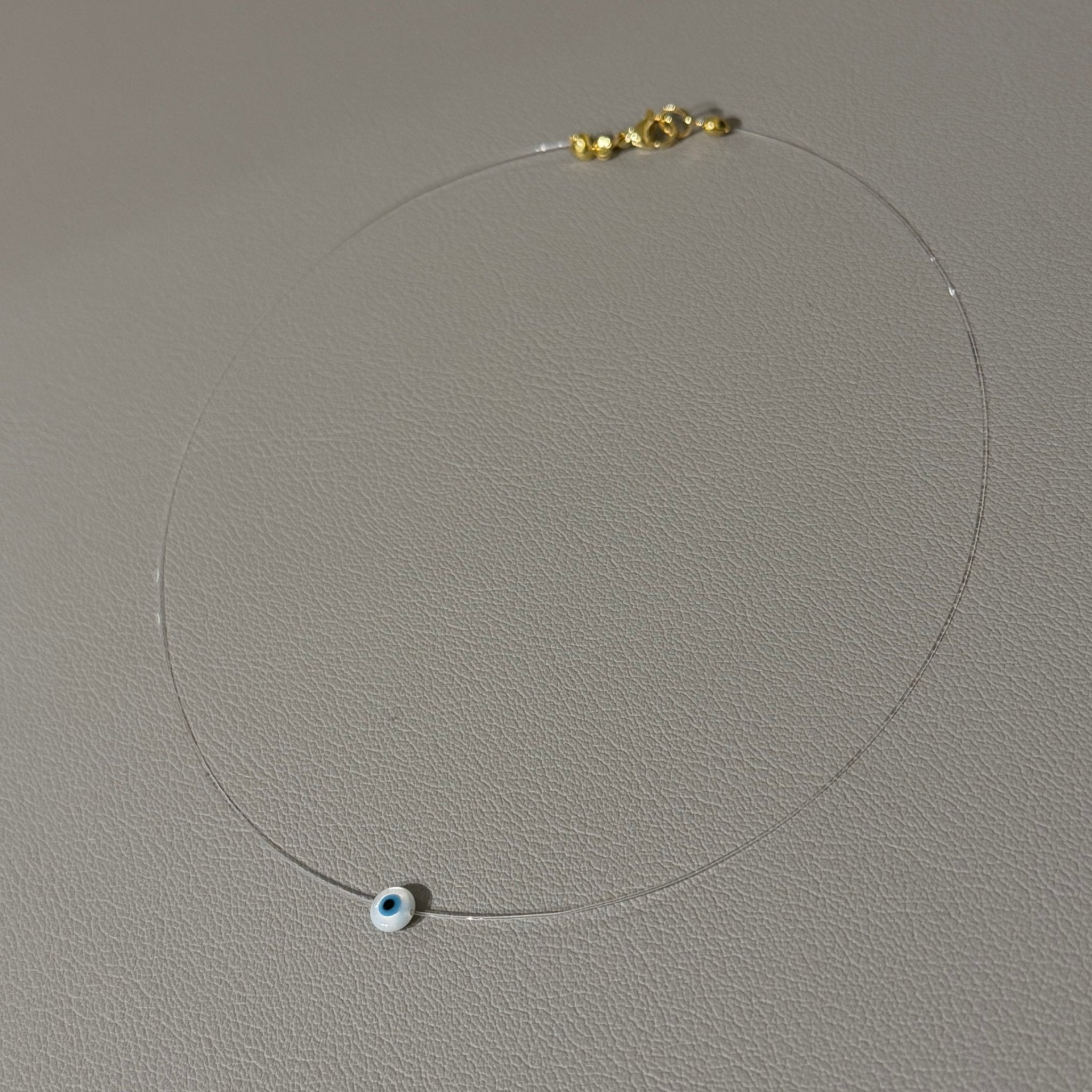 A delicate mother of pearl evil eye illusion necklace designed for a barely-there look that feels modern, refined, and effortless. Crafted with a fine nylon thread and a subtle mother of pearl evil eye, this piece creates the illusion of the charm floating on the skin. Lightweight and comfortable, it’s perfect for everyday wear and easy to layer with other necklaces while still standing beautifully on its own. A timeless piece that adds a soft protective touch without overpowering your look.