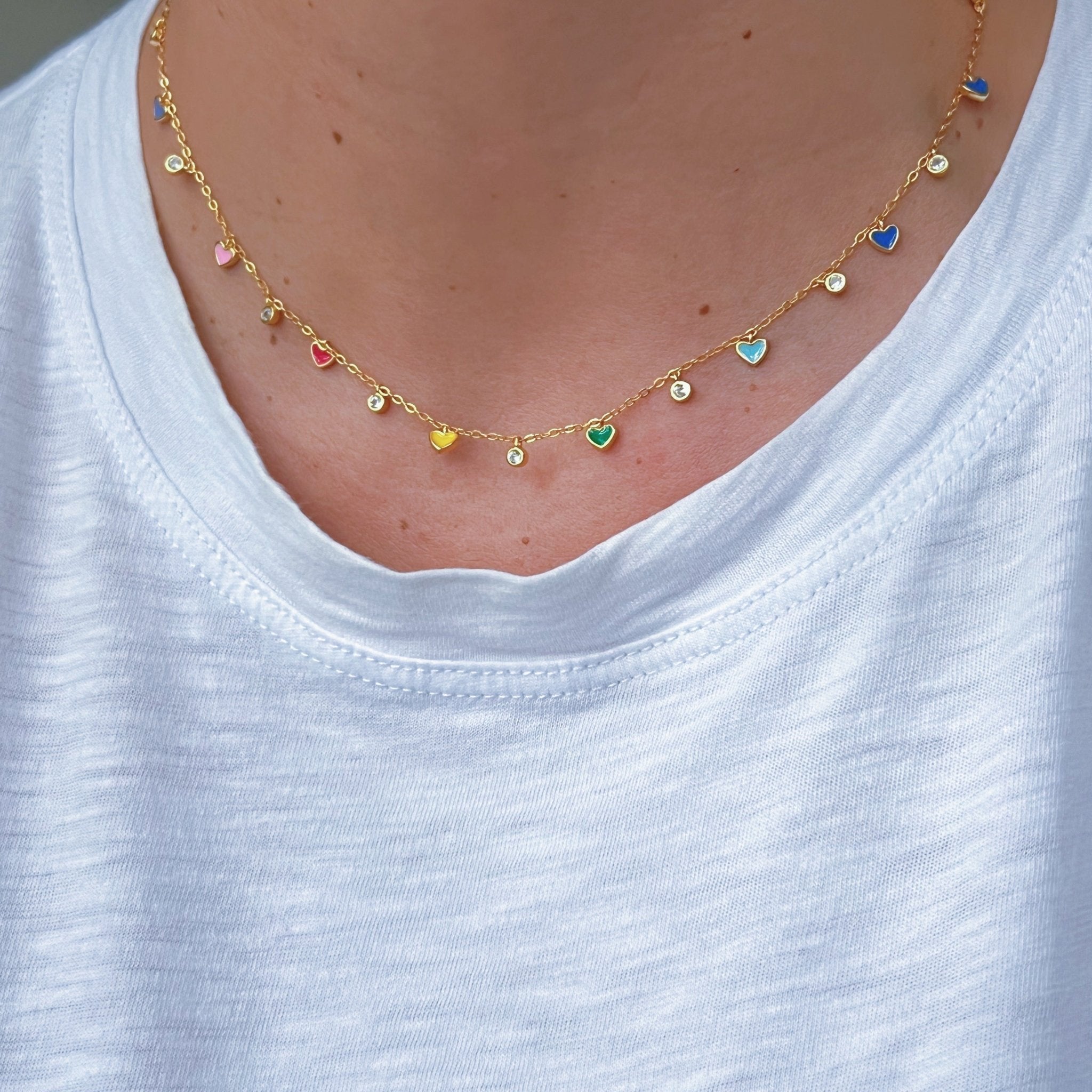 This delicate necklace celebrates joy and love in every shade. Featuring tiny enamel hearts and sparkling cubic zirconia, it’s a piece that adds light, happiness, and elegance to any look. A limited edition design made to be treasured.