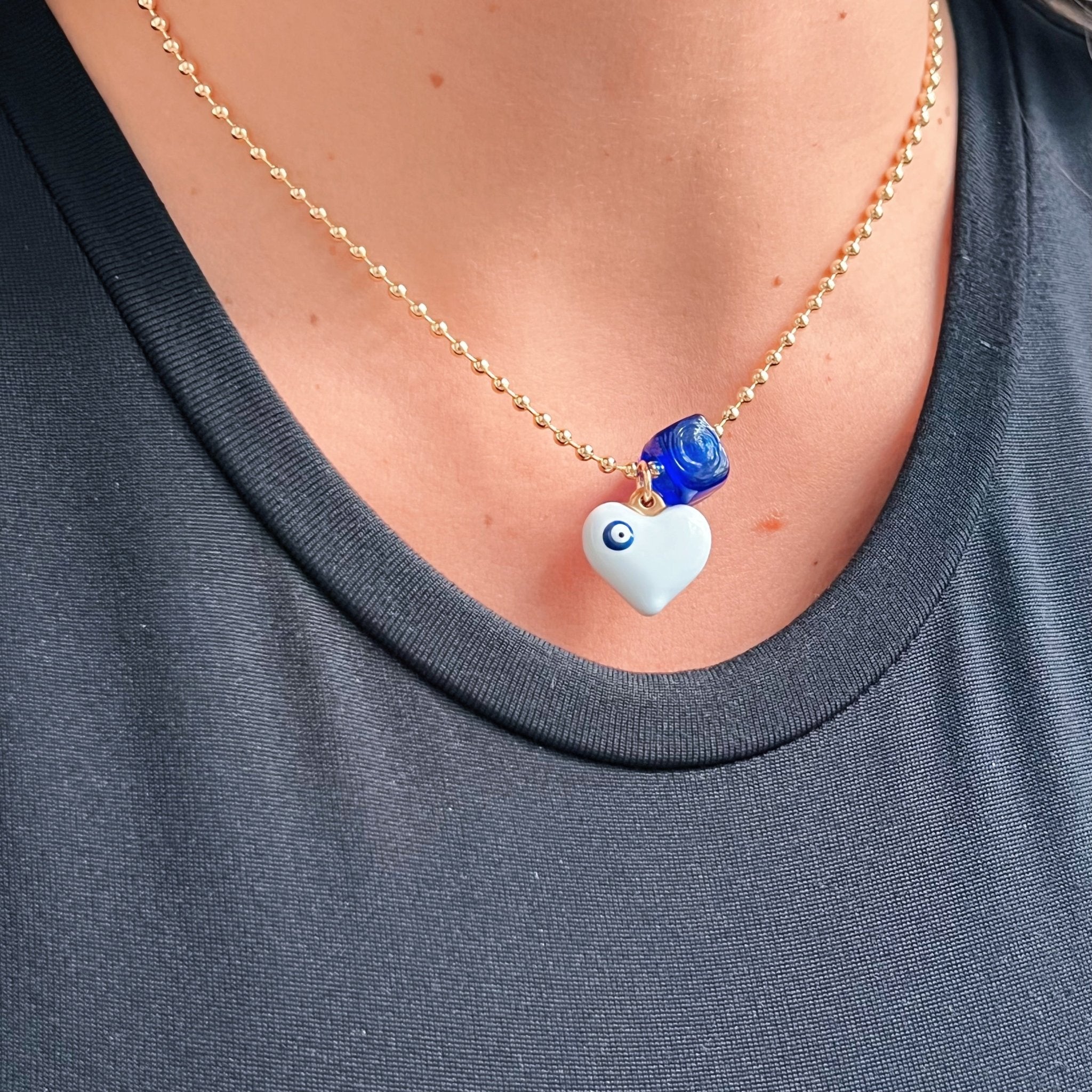-Pendant Measures: Heart: Height 1.4 cm. Width 1.6 cm. Glass Cube 9mm height 7 mm Width. Approx.