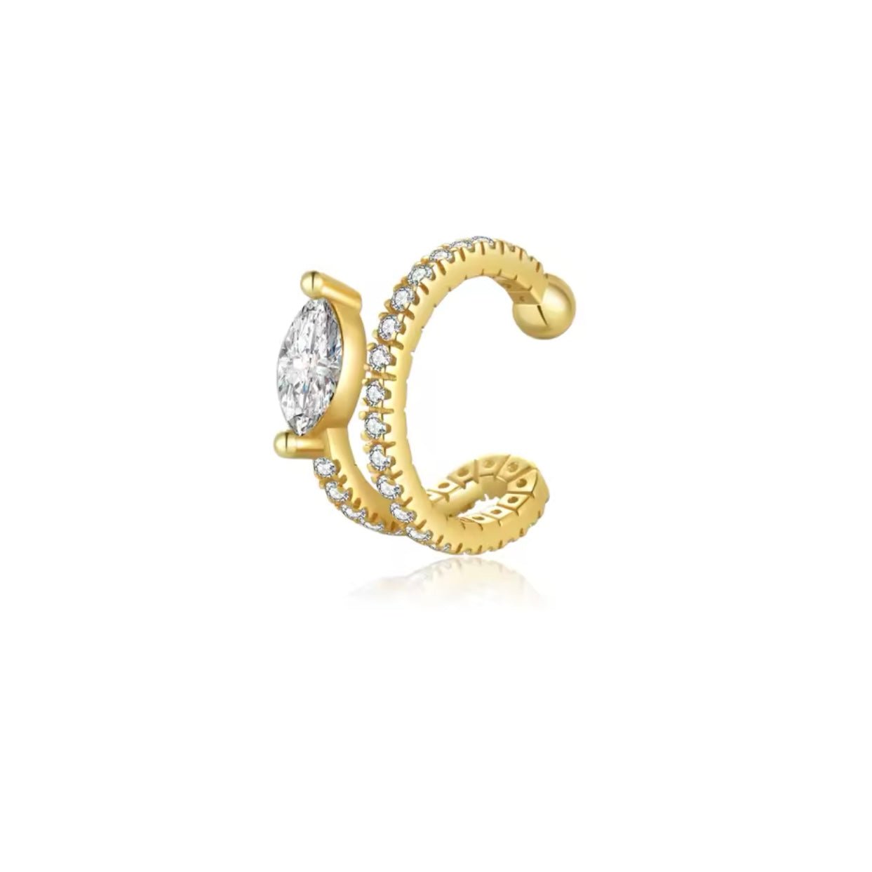 Add a refined touch to your look with the Dainty CZ Ear Cuff. Made from 18k gold-plated sterling silver, this minimalist piece features a delicate cubic zirconia stone. Measuring approximately 1.3 cm, it’s perfect for everyday wear or pairing with other ear accessories for a layered effect. Whether worn alone for a simple, elegant look or stacked with other cuffs, this piece will elevate your style effortlessly.