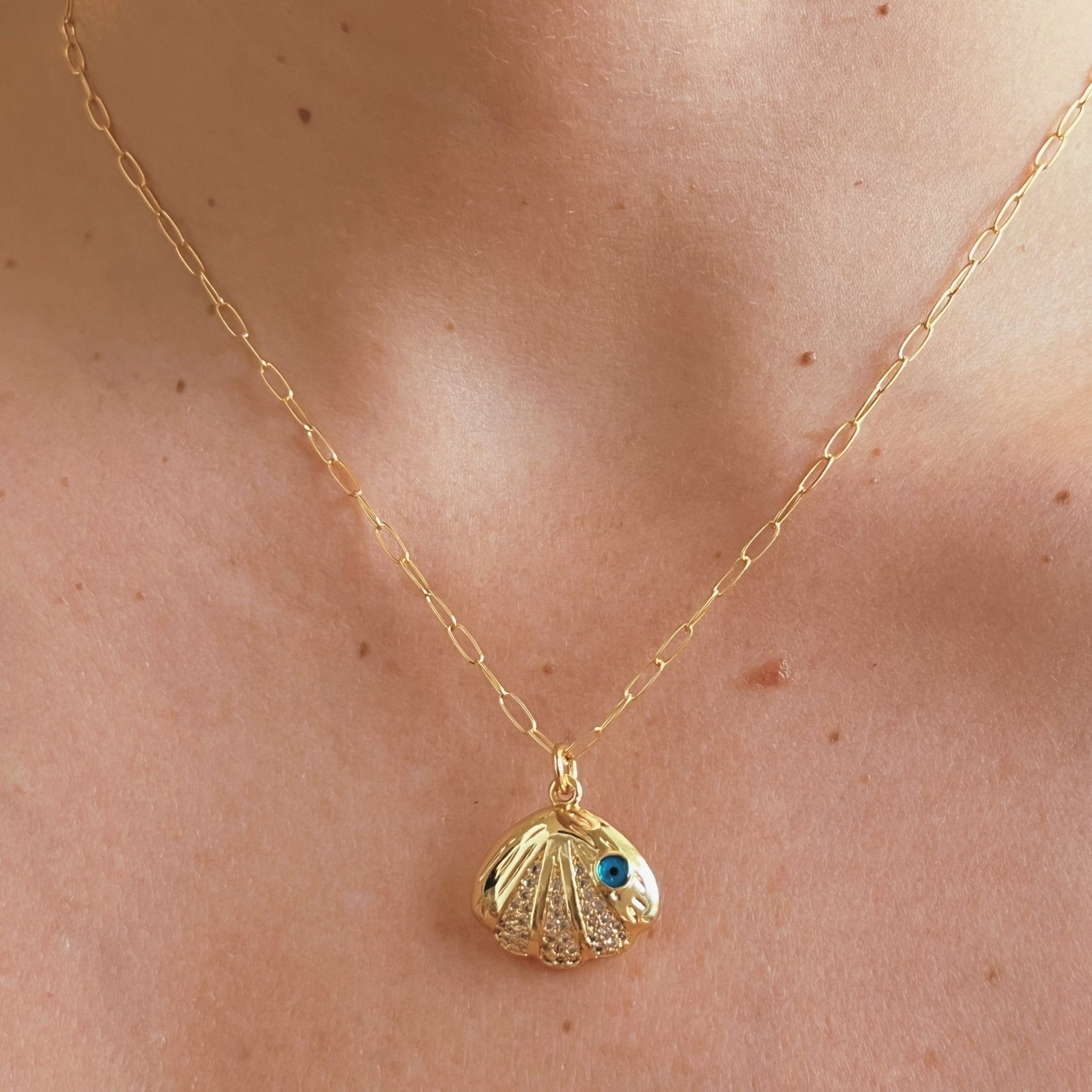 I’m Protected Wherever I Go — Seashell Evil Eye Necklace