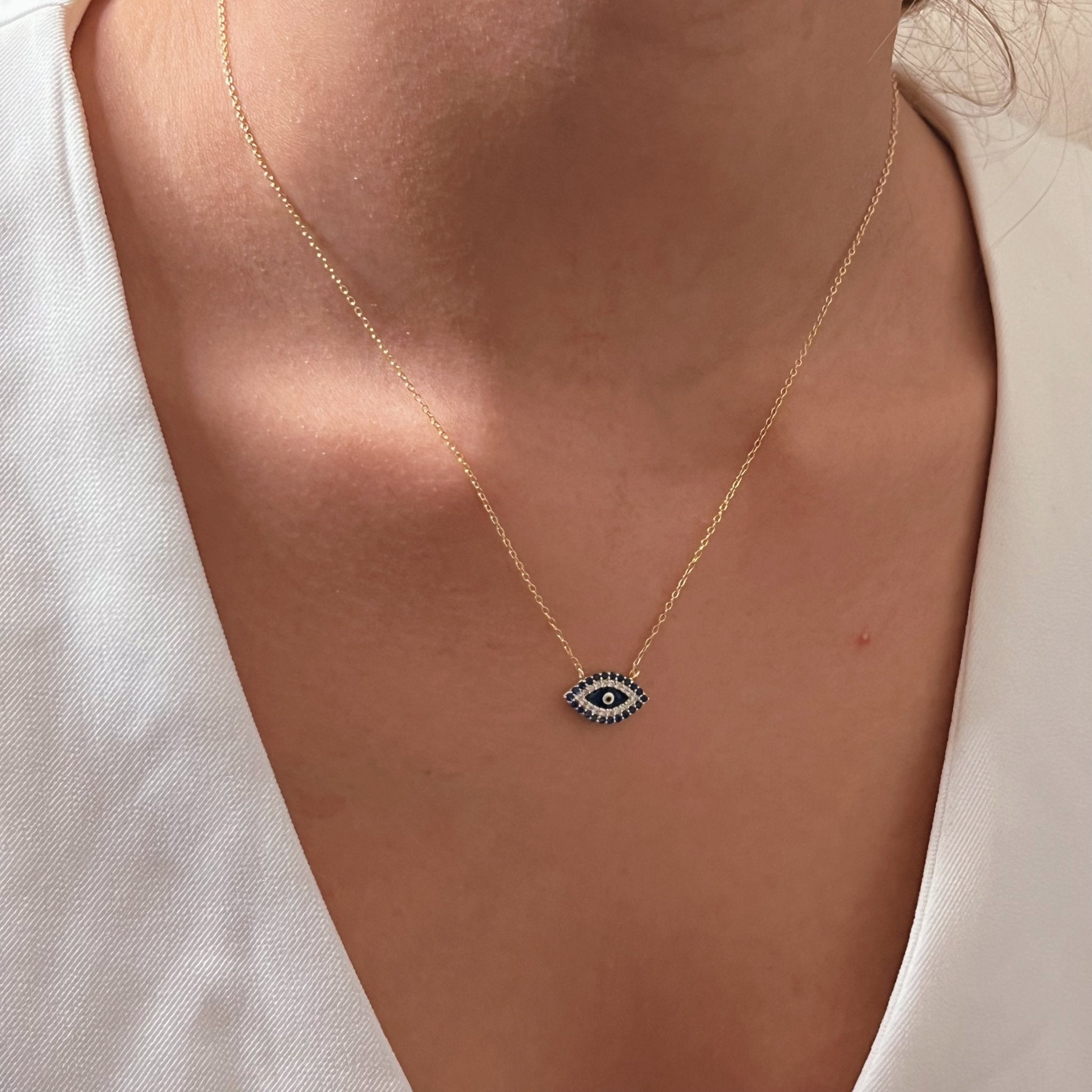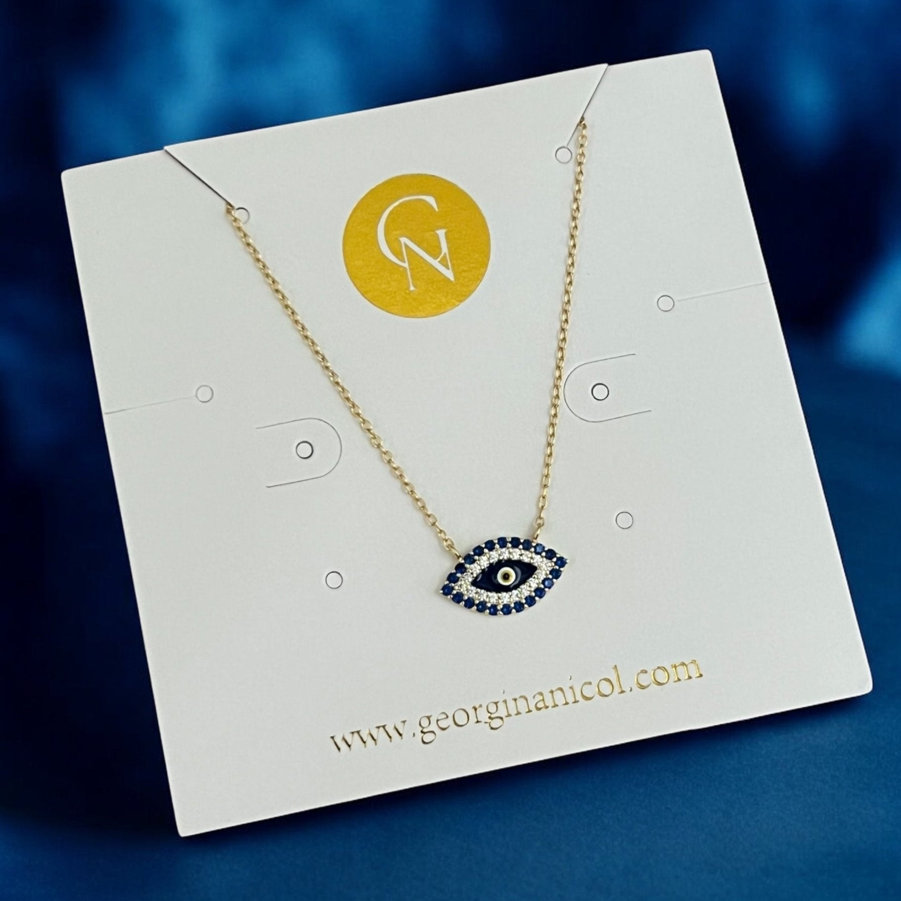 This bold and brilliant eye is more than an accessory — it’s an energetic protector. Set with vibrant CZ stones in rich blue tones, this modern talisman shields your energy and elevates your everyday look with symbolic elegance.
