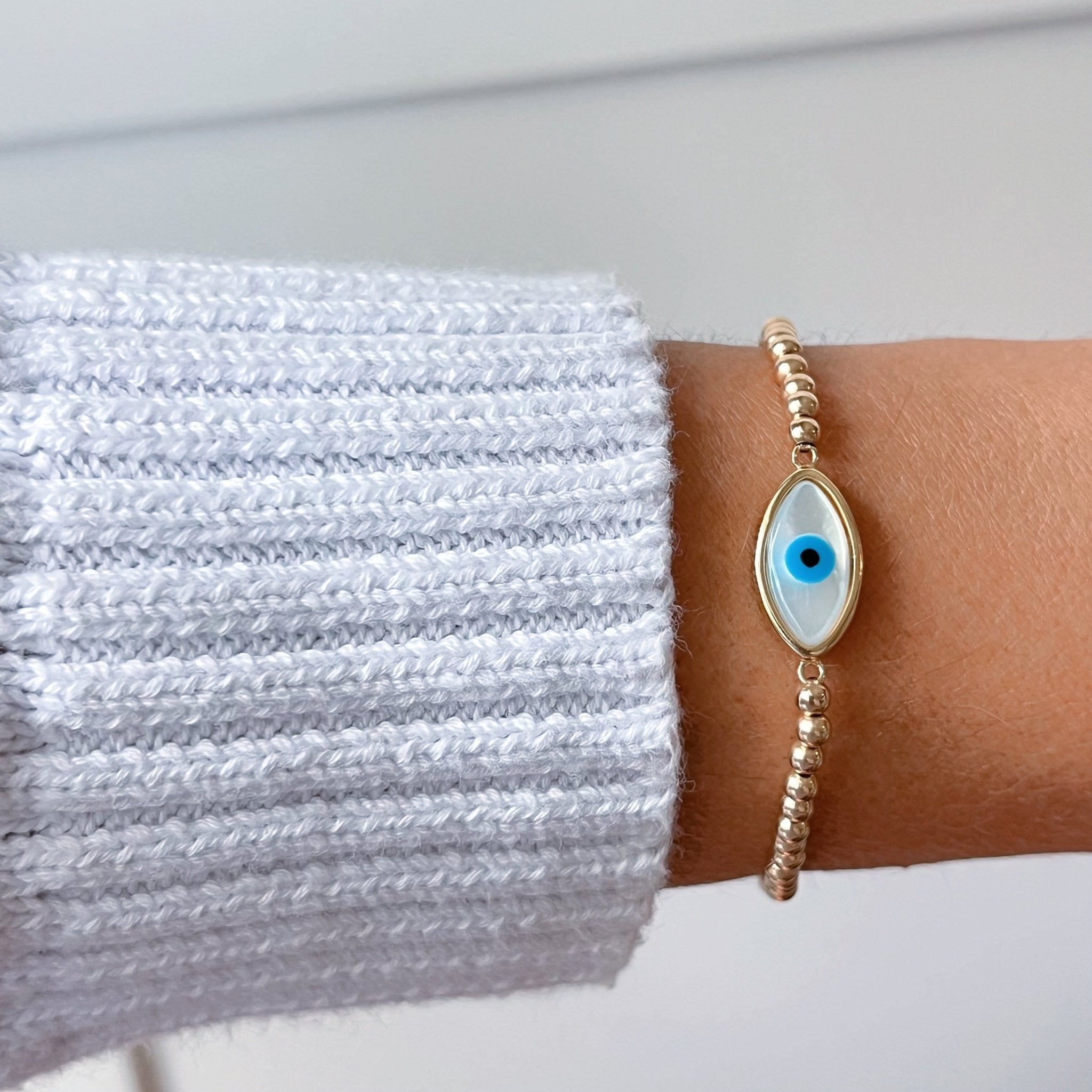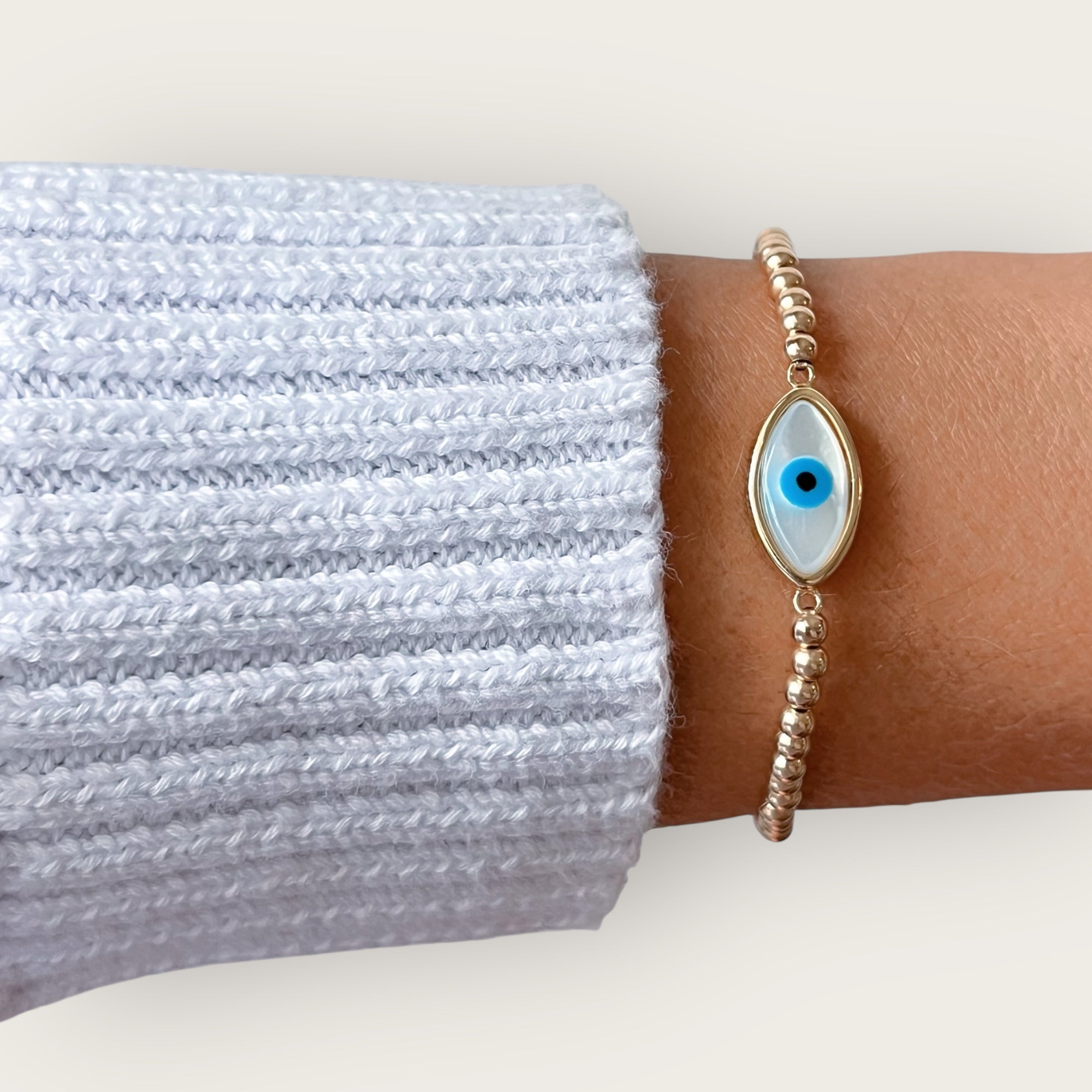 I Welcome Protection and Elegance — Mother of Pearl Evil Eye Bracelet
