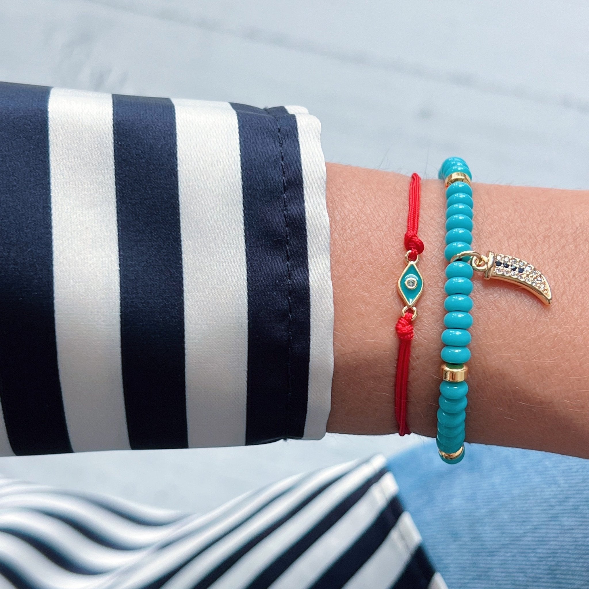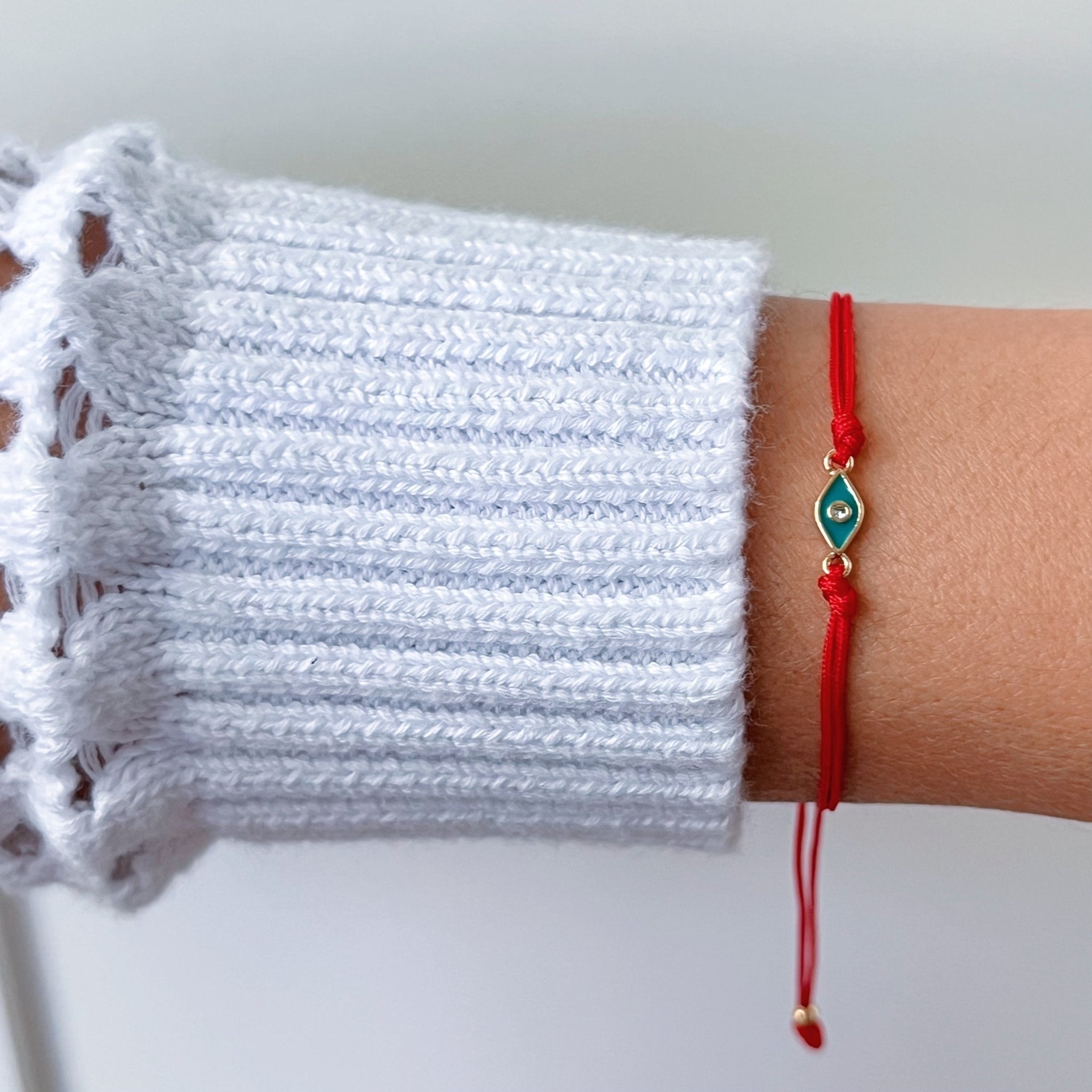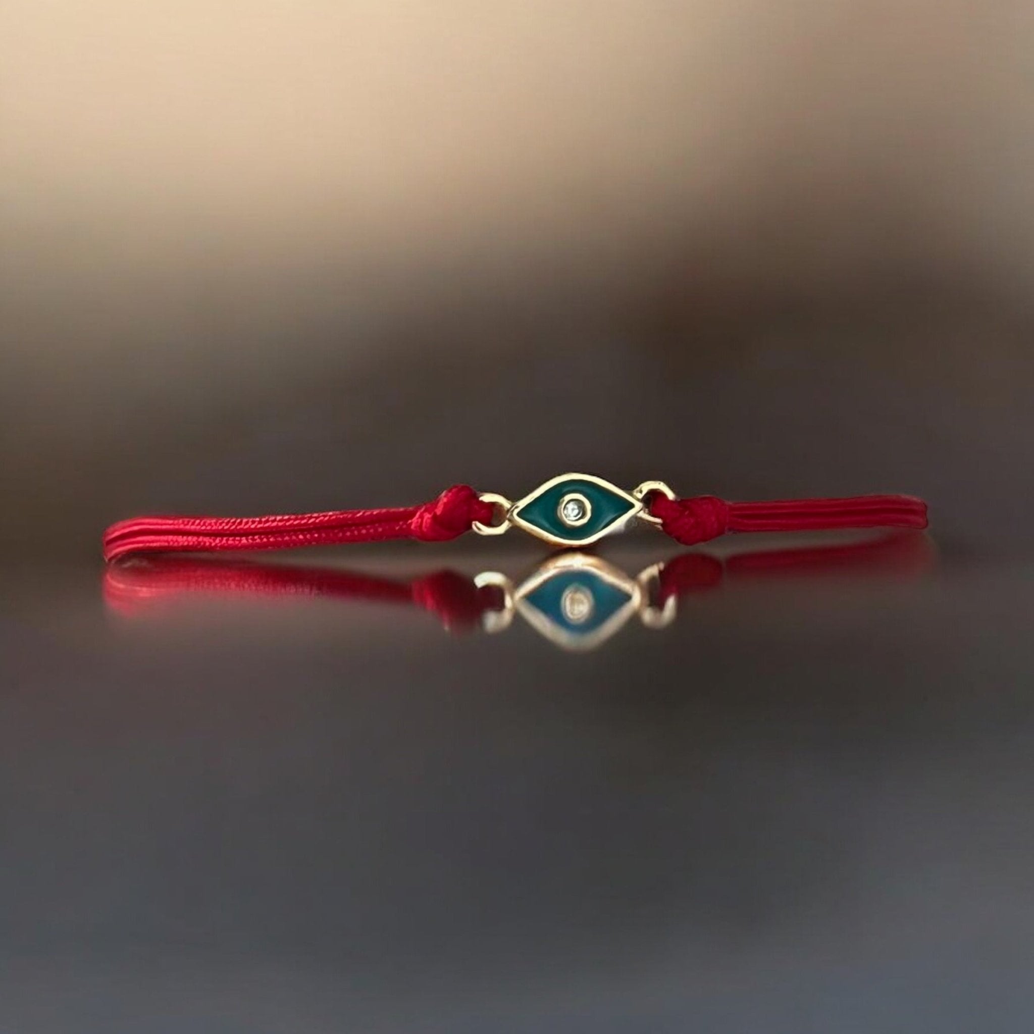 A delicate reminder that your energy is sacred. This red string bracelet features a turquoise enamel evil eye with a cubic zirconia center — a powerful symbol to ward off negativity and attract only elevated, positive energy. Wear it as your daily protector and intention setter.