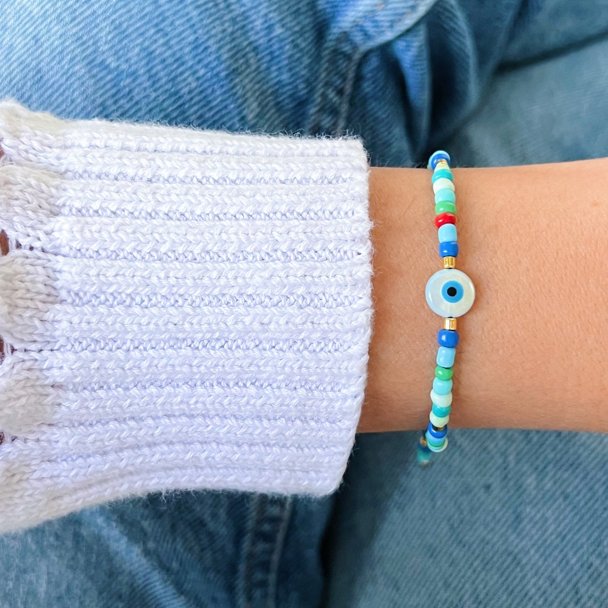 Only Good Energy Surrounds Me — Mother of Pearl Evil Eye Bracelet