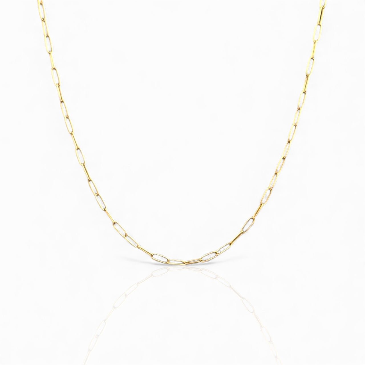 A minimalist must-have — this mini paper clip chain necklace adds effortless elegance to any look. Crafted in 18K gold filled with a delicate shine that never goes out of style, it’s perfect to wear solo or layered with your favorite pieces.
