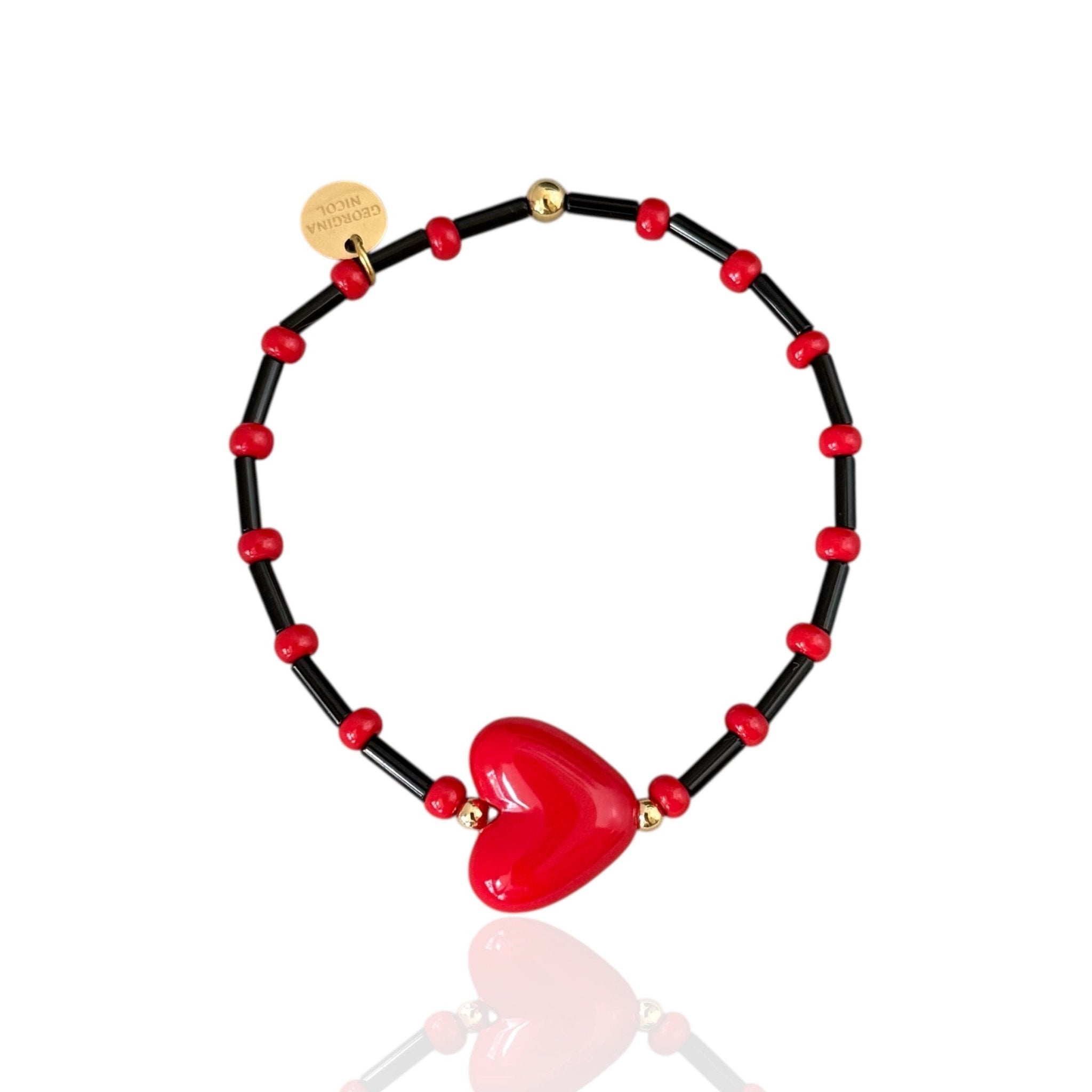 A symbol of passion and joy, this bracelet celebrates the beauty of love in its purest form. The red heart represents vitality and emotional strength, while the sleek black beads bring balance and depth. Designed to remind you that love — for yourself and for life — is always your greatest source of power.