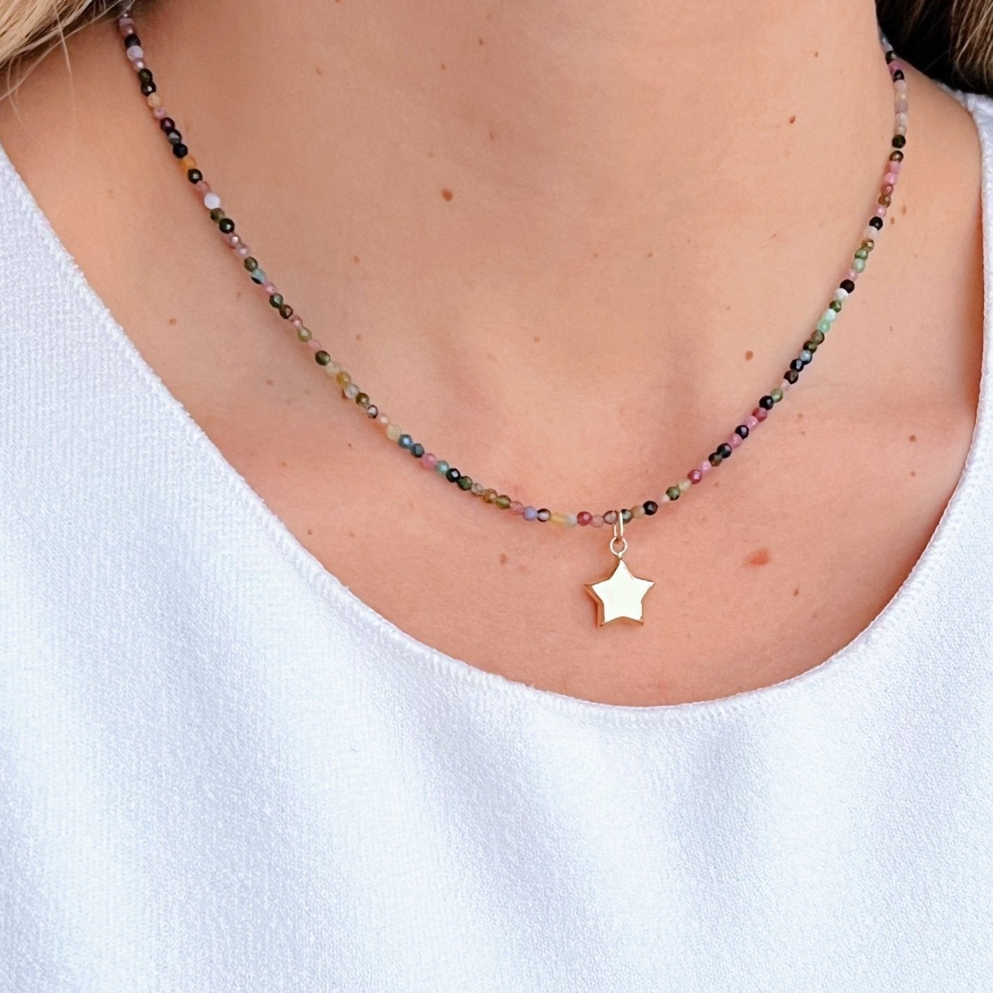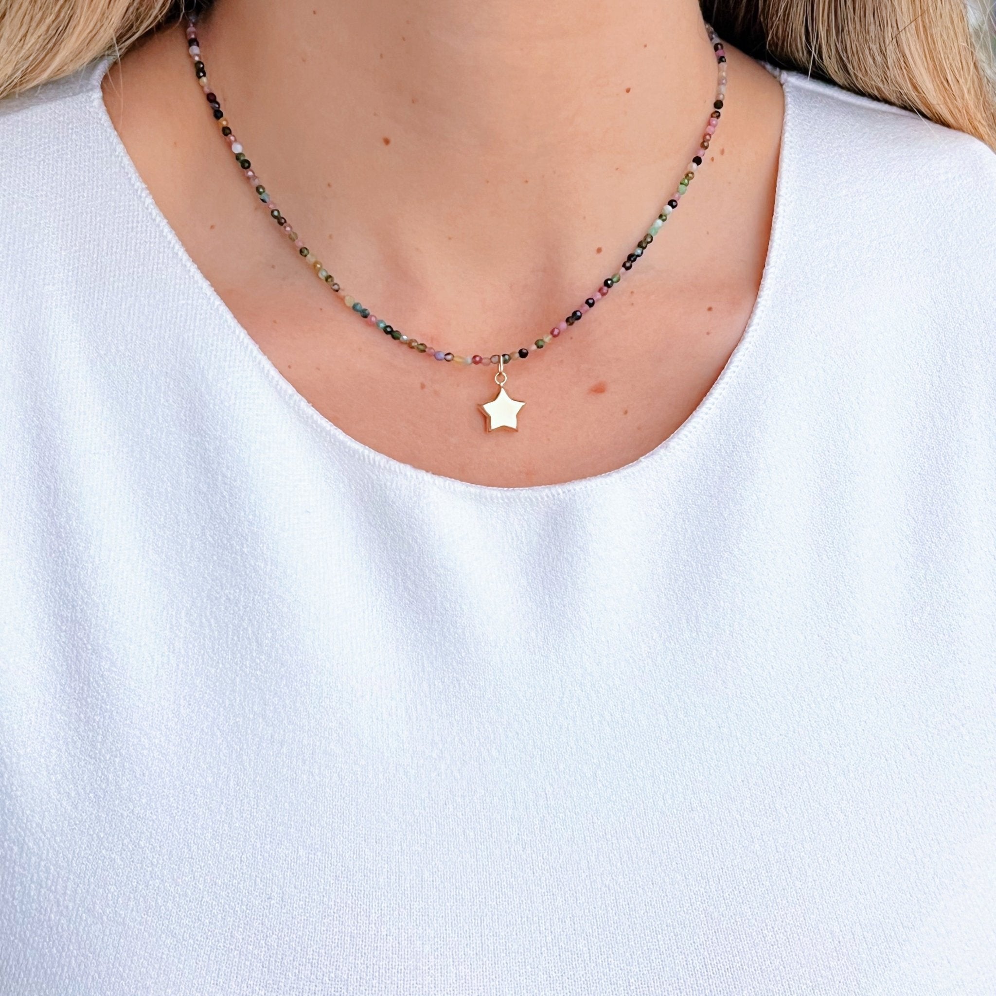 Wish Upon a Star – Tourmaline Necklace with 14K Solid Gold Star