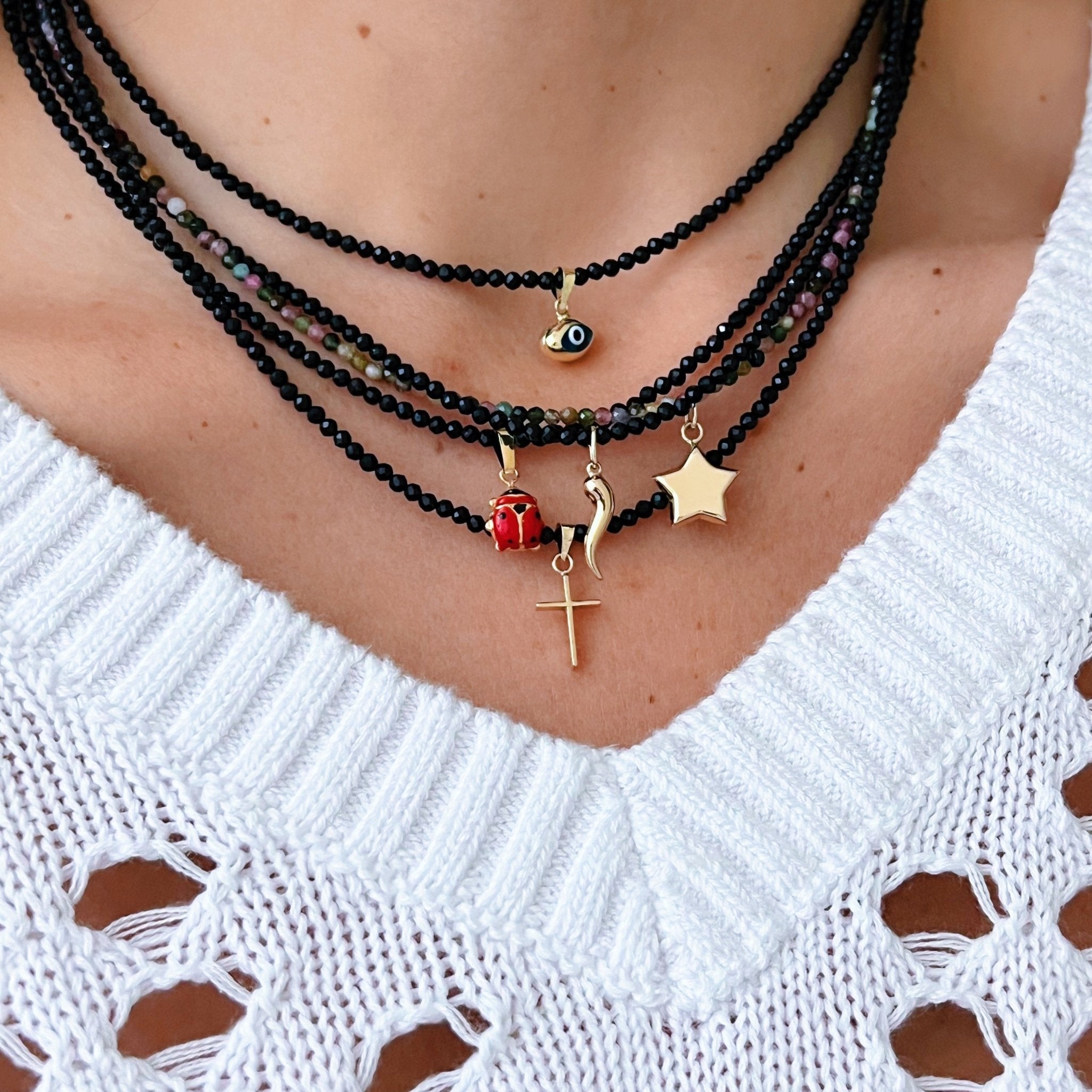 Let your inner light shine with this stunning tourmaline gemstone necklace, known for its protective and healing properties, paired with a 14K solid gold star pendant, symbolizing hope, guidance, and positivity. The colorful tourmaline stones beautifully complement the radiant gold, making this necklace a meaningful and stylish piece for everyday wear or special occasions.
