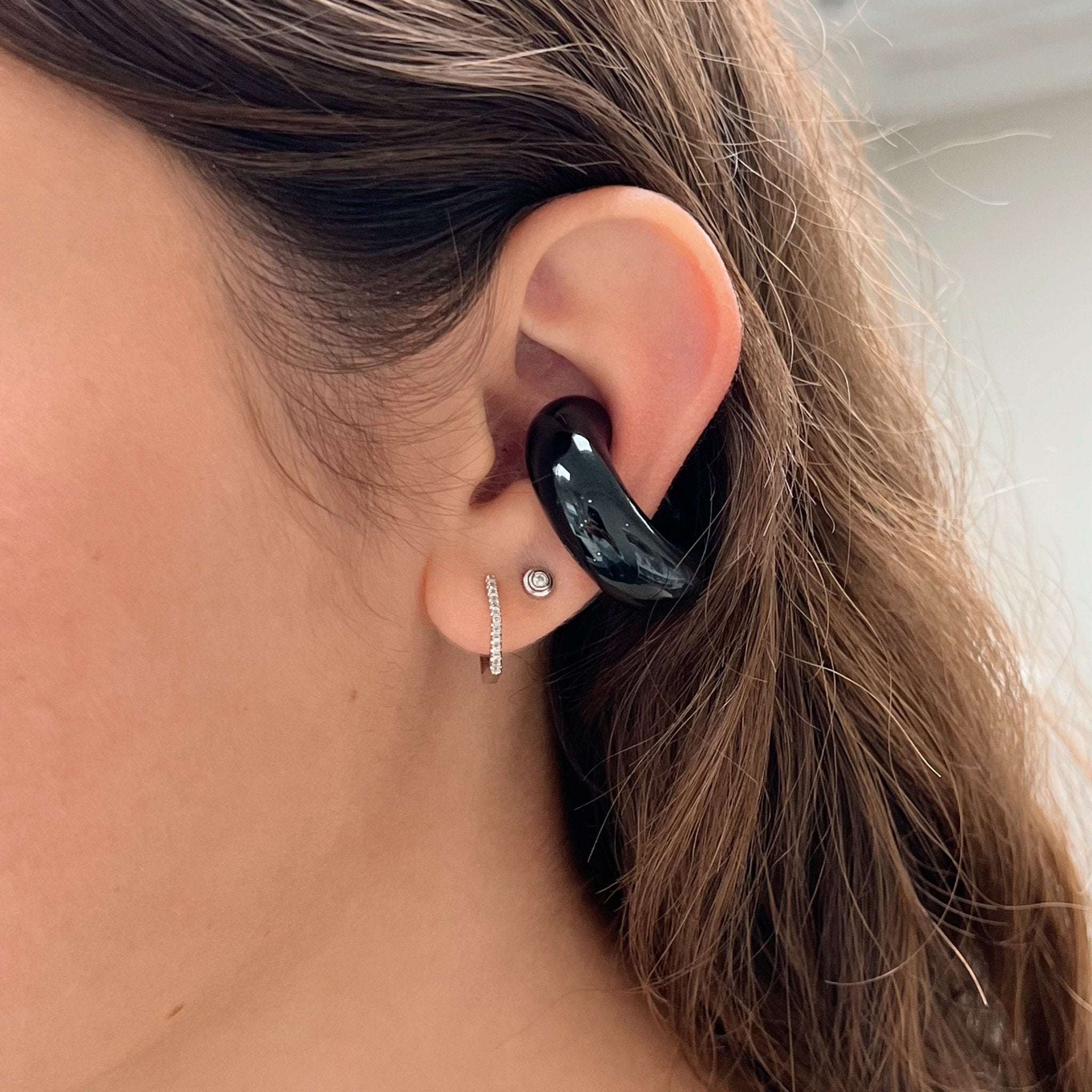 Stay on trend with this stylish Black Chunky Ear Cuff. This stainless steel piece is sure to make a statement. Its chunky, bold design is sure to stay in place securely and comfortably for all-day wear. Get the perfect ear accessory to complete any look.